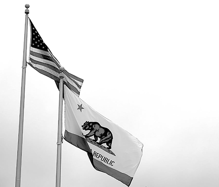 このプリントに使われている写真【FLAGS】はアメリカ国旗とカリフォルニア州旗が風に靡く印象的なデザイン。
